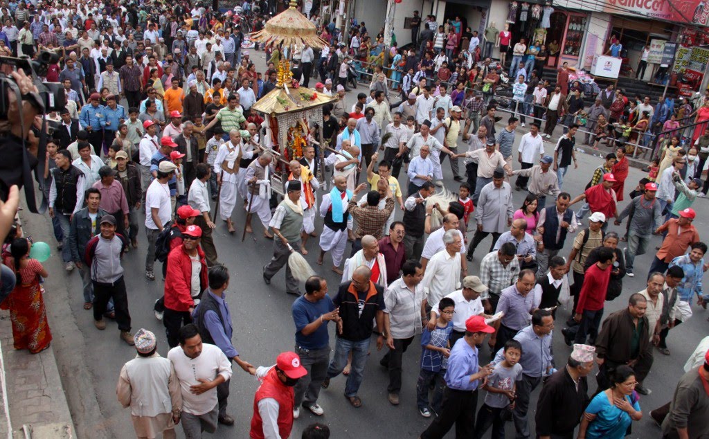 Earlier, the statue of Janabahaa Dyo was put in an artistic palanquin at Janabahaa and carried to Durbar Marg by ten caretaker priests, who had undergone ritual purification procedures.